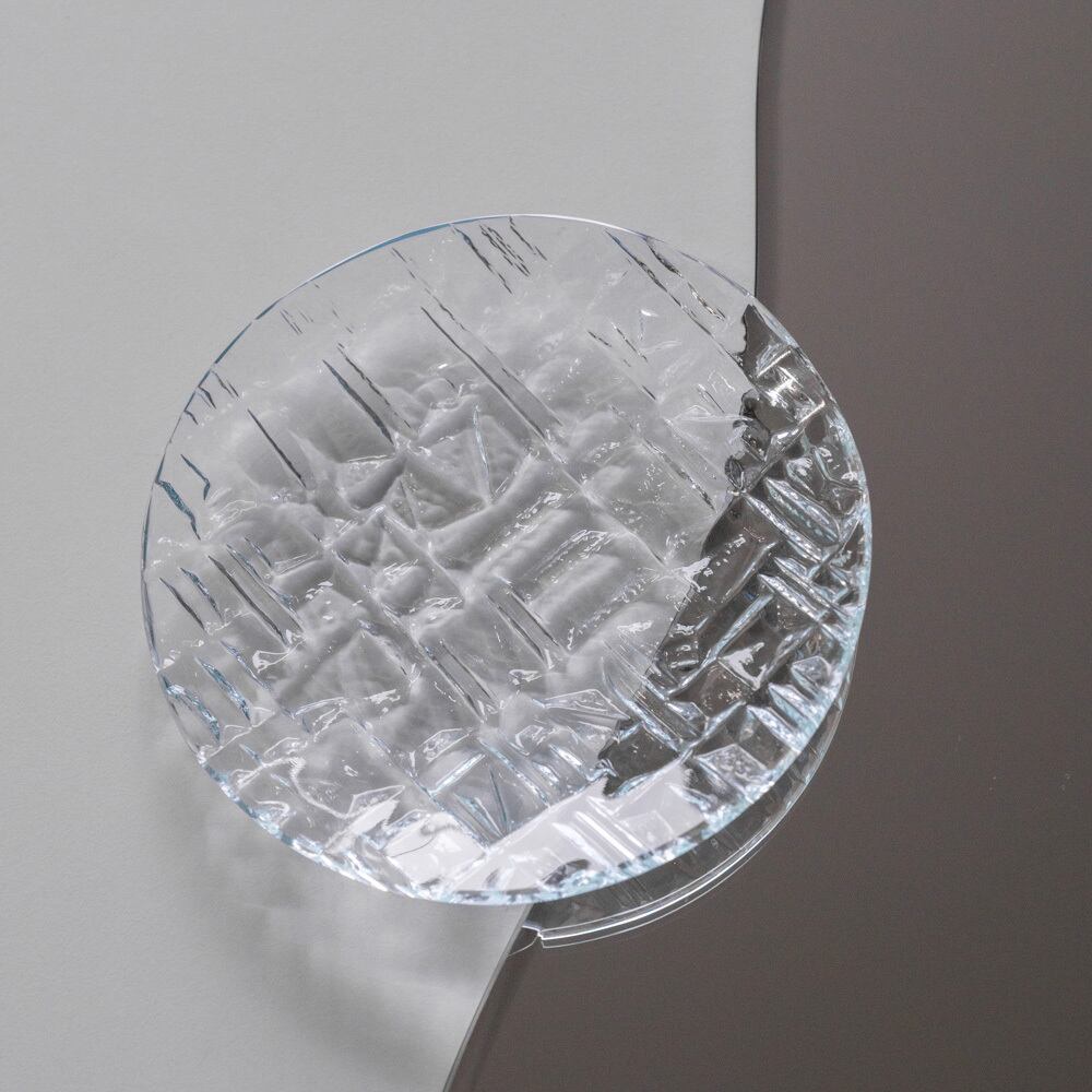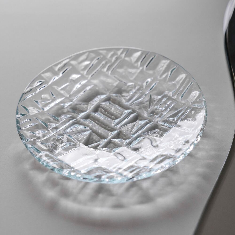 幾何学模様のエンボスが魅力的な「アブストラクトX」を使用したガラスのうつわです。